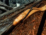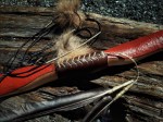 Fenrir is an assymetric bow made from Laurus Nobilis (Bay Laurel). Its draw is 35#@27″, backed with silk and painted. I’m really happy with the profile that the tilted handle gives it.